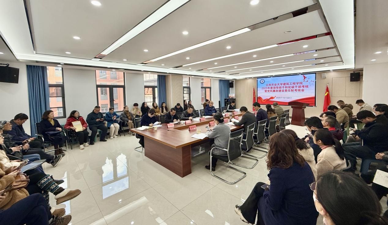 2025年12月22日, 根据 学校党委统一部署,第七考核组一行来到学院,在正德楼C503会议室开展2025年度“四项考核”集中现场考核,涵盖党风廉政建设责任制检查、中层领导班子和干部考核、落实意识形态工作责任制考核以及二级党委书记抓基层党建工作述职评议 等四项 考核。学院全体职工参会,会议由学院党委书记王国贤主持。