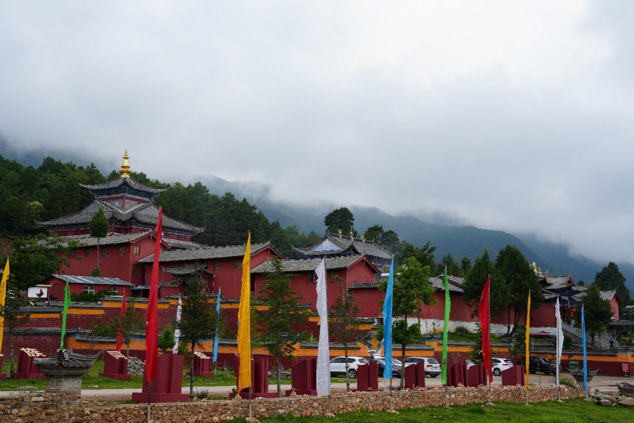 实践团队来到白沙古城,首先探访了位于白沙古镇西北郊的福国寺。丽江市福国寺静处白沙古镇一隅,青瓦木梁间,彩画成为古刹最鲜活的印记。梁柱与斗拱上的纹饰历经风霜,却依然光彩照人,堪称纳西佛画艺术的缩影。队员们走进寺庙,轻轻抚摸着那些古老的彩画,感受着岁月留下的痕迹。这些彩画不仅展现了纳西族佛教艺术的独特魅力,也反映了当时社会的宗教信仰和文化风貌。