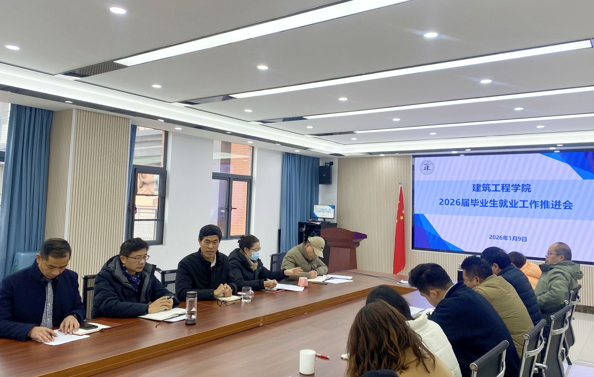 为统一思想、凝聚共识,全力推进2026届毕业生就业工作,2026年1月9日上午,学院在503会议室召开2026年第一次毕业生就业工作推进会,学院领导班子、各系(专业)负责人及2026届毕业班班主任辅导员参会。